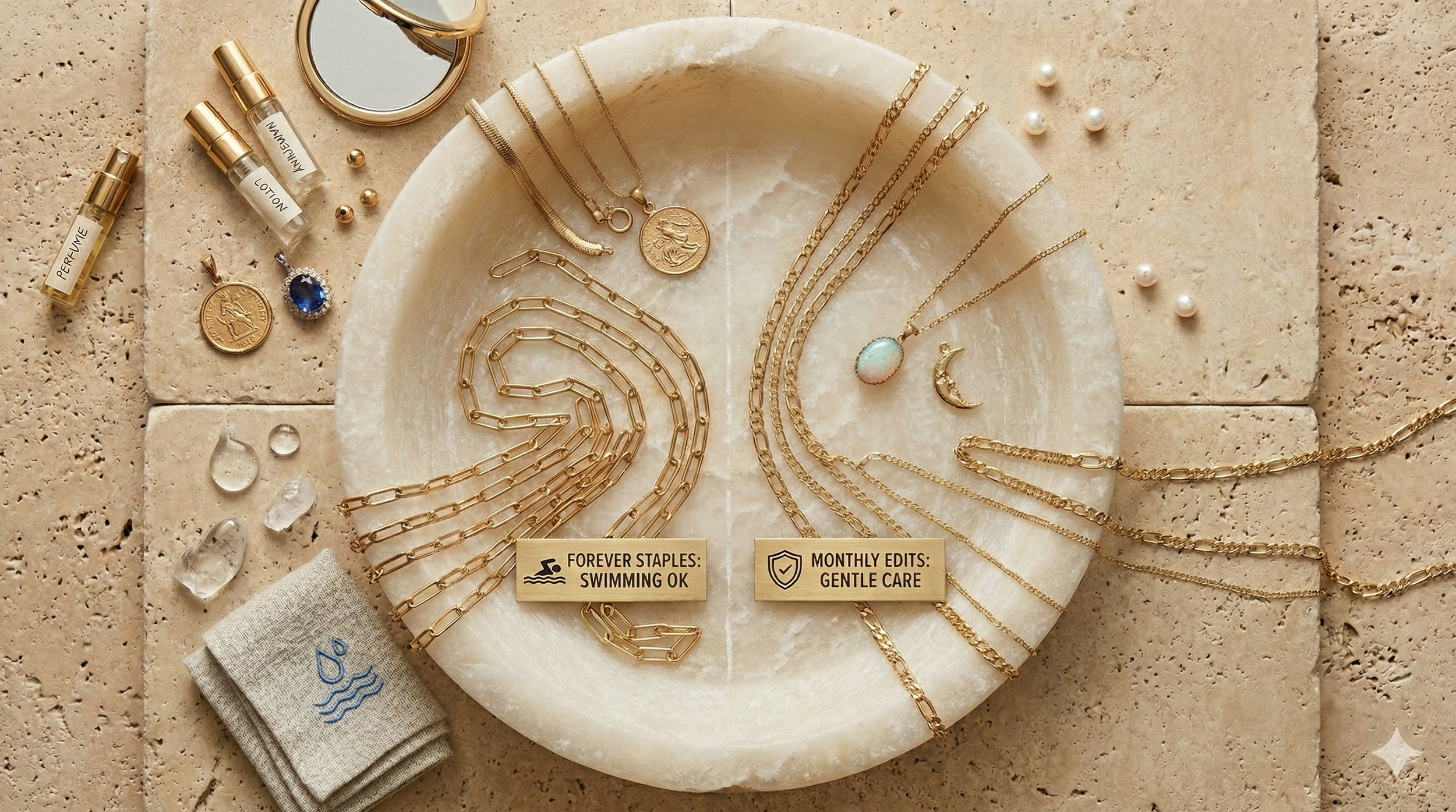 For Monthly Edits, we recommend removing them before heavy swimming or harsh chemical exposure to protect their finish long term.